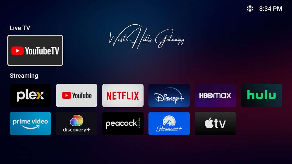 If you fancy video games, we've got you covered. On the living room TV, from the main "West Hills Getaway" screen, arrow down to the Gaming category and select Boosteroid.