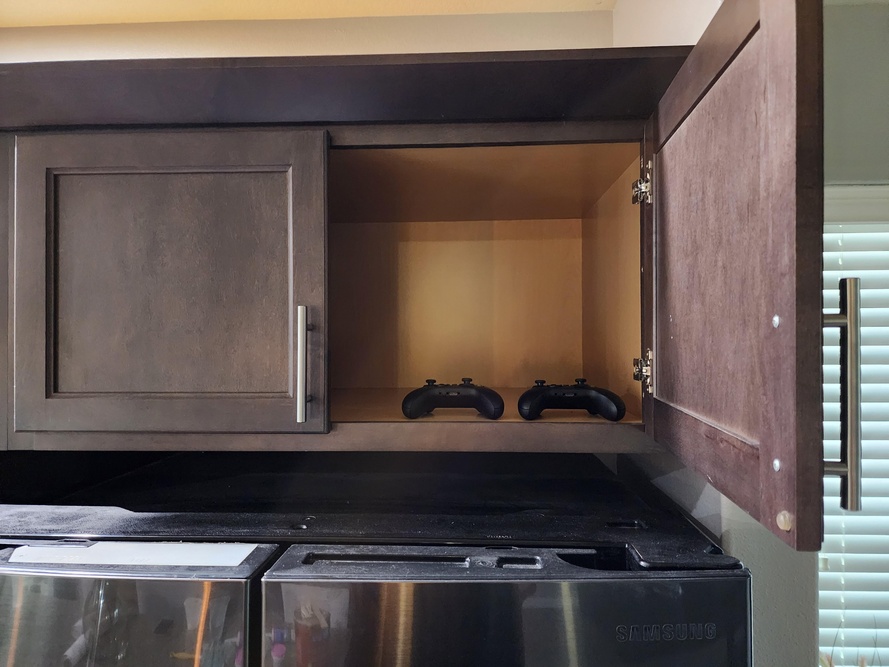 There are two controllers available in the cabinet above the refrigerator. Please make sure to put the controllers back there before checking out!